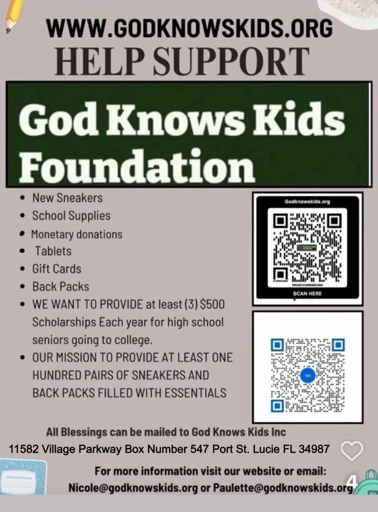 Join us in empowering individuals and communities through your generous donation to God Knows Kids Foundation. Together, we can create positive change!